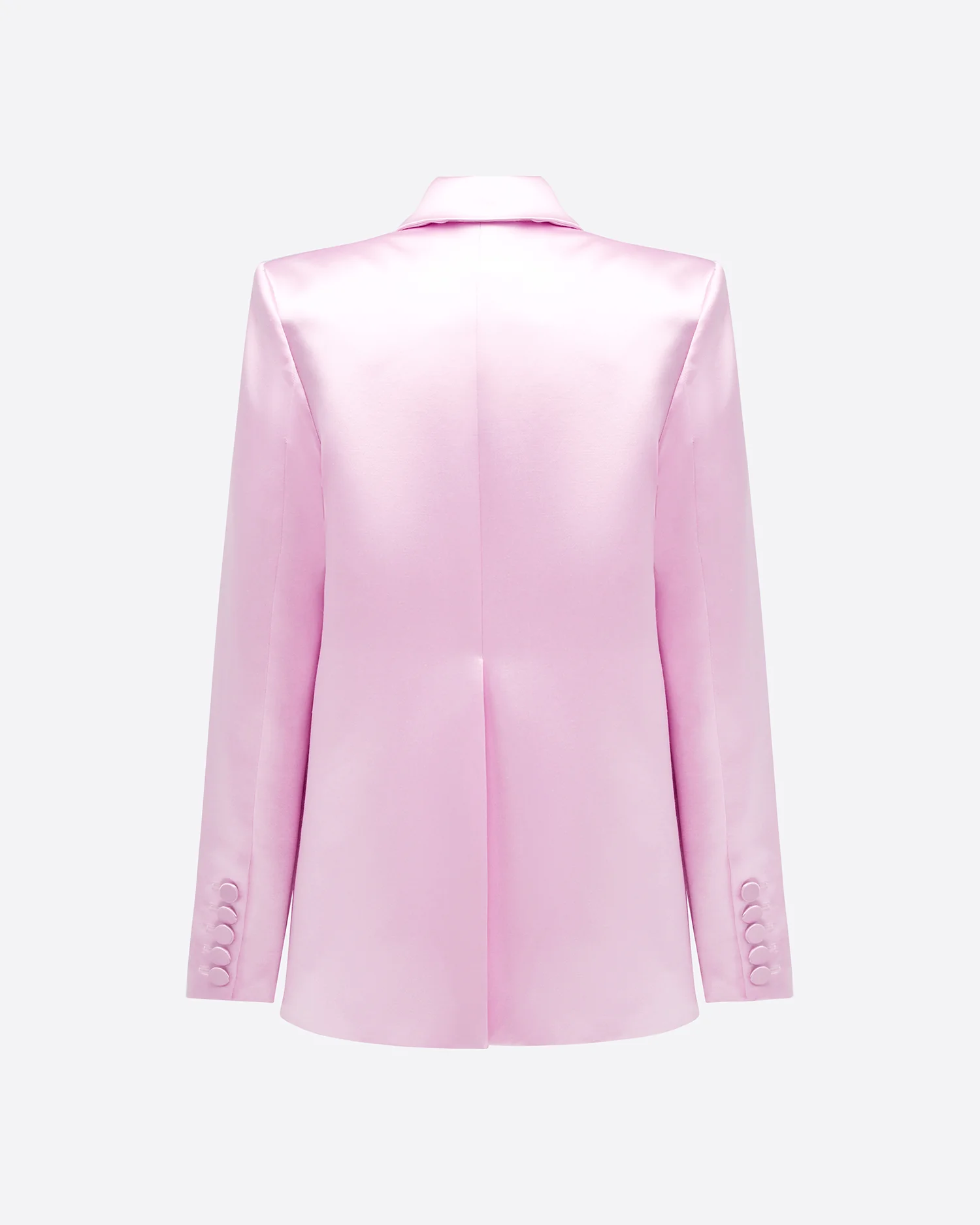 Double breasted blazer constructed in a duchess satin, tailored to a structured oversize boxy silhouette.