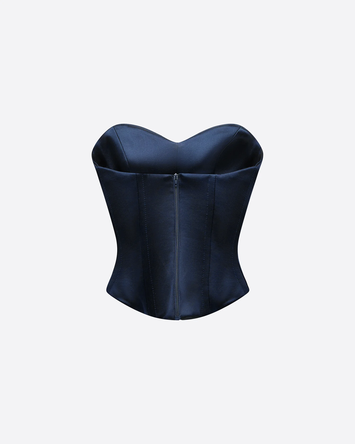 Strapless top featuring a panelled longline corset and a sweetheart neckline.